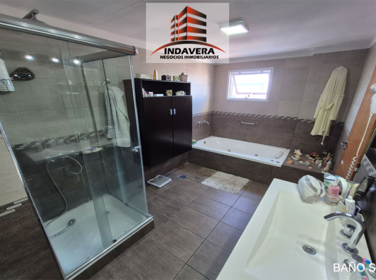 Gran Suite principal con vestidor y balcón privado. Baño completo con hidro y cabina de ducha.