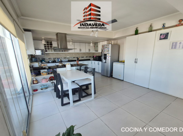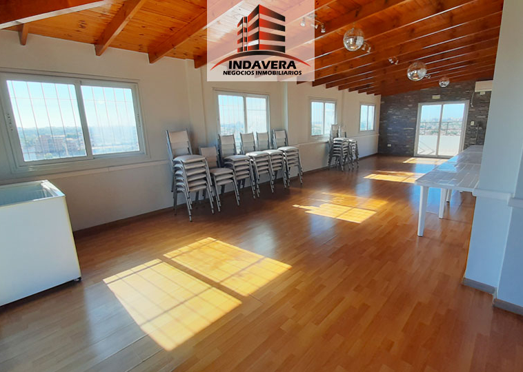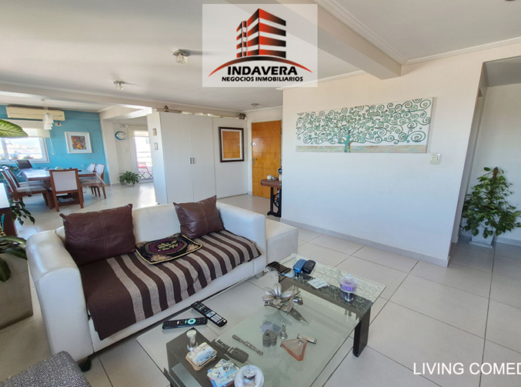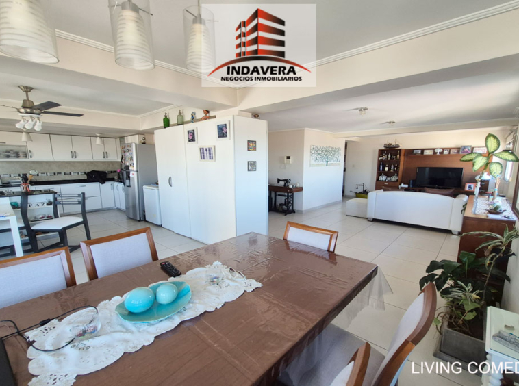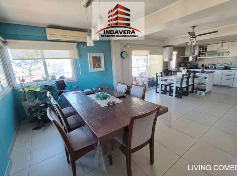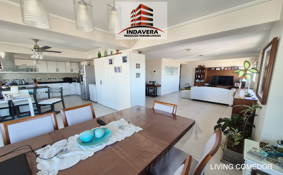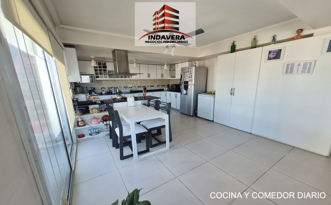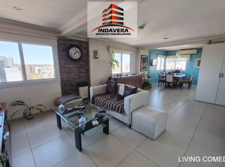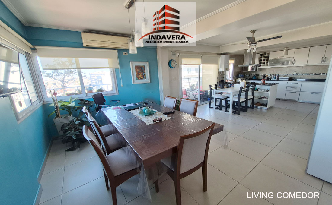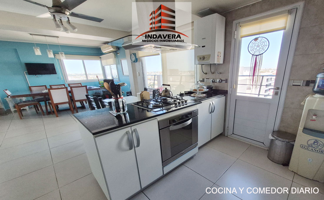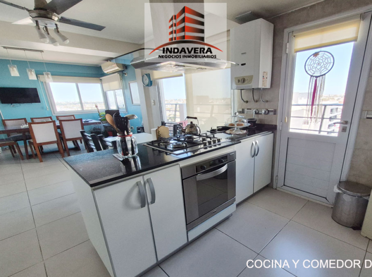 Hermoso Semipiso. Vista Panorámica. Entrada a gran living comedor en L con cocina y comedor diario integrado (posibilidad de división). Cocina con isla con anafe y horno a gas. Salida a balcón con parrilla.