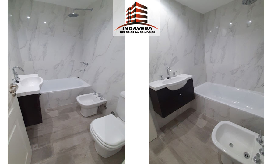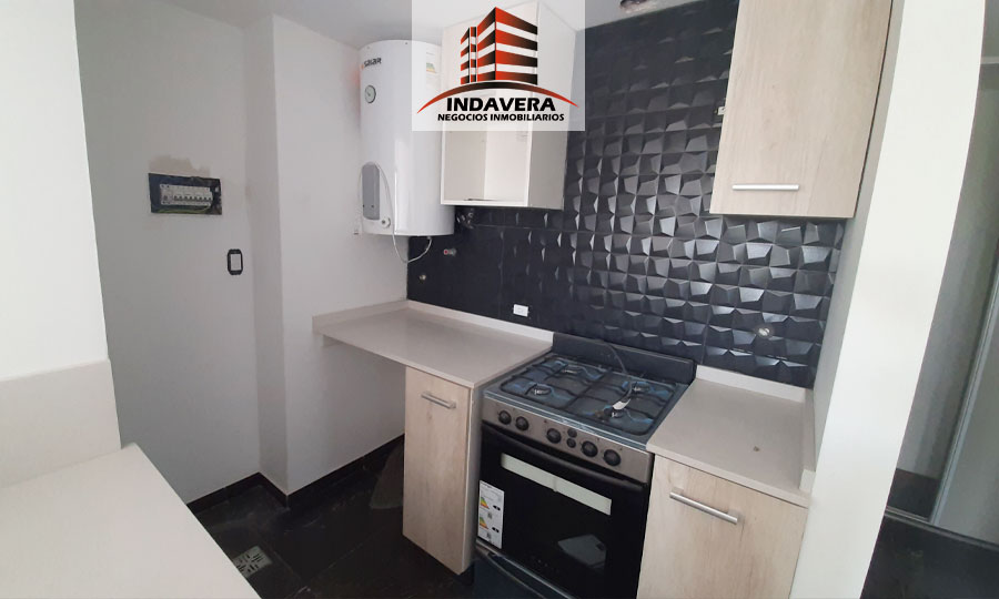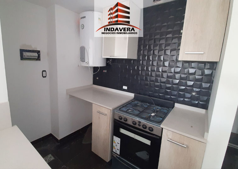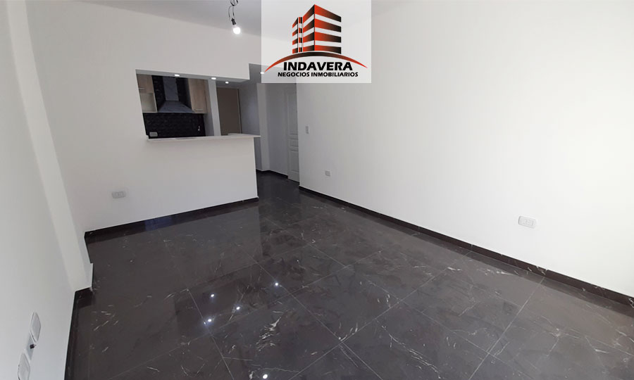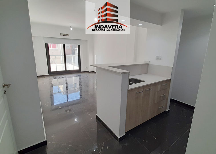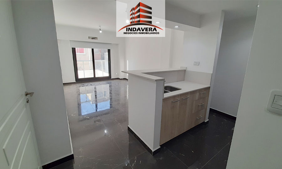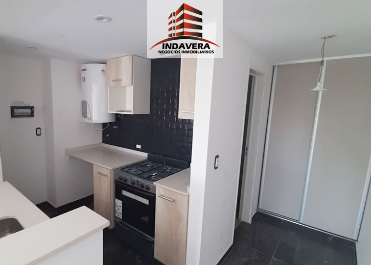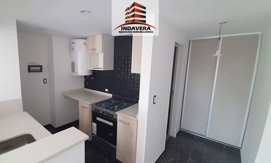 Amplio Ambiente (5×3,5 aprox) con cocina integrada, Barra desayunadora, muebles alto y bajo mesada, espacio para heladera y lavarropas. Baño completo con bañera y vanitory flotante, grifería y artefactos de primera marca, cómodo ambiente con placard embutido con interior y con amplios ventanales. Excelentes detalles de terminación. Termotanque eléctrico y cocina a Gas. Cortina black out.